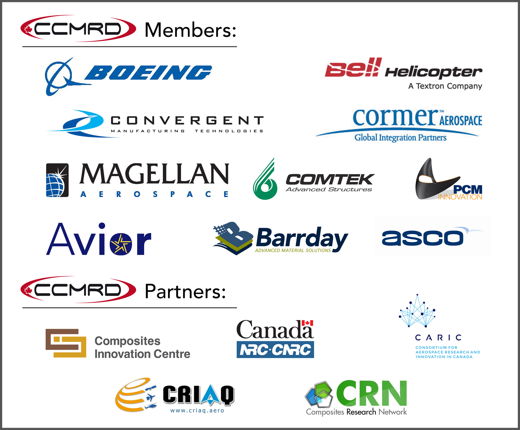 The Composites Innovation Centre has played a key role in helping the CCMRD to succeed by providing management services to organize, administer and lead the consortium. The CIC continues to support the CCMRD with the realignment of its mandate and operations to enable it to increase its relevance to industry partners.