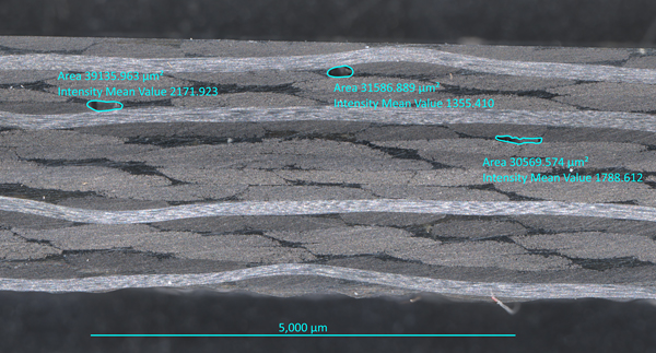- Void Content: how many voids (trapped gasses, moisture etc.) were in the part (performed at CIC using Axio Zoom V16 optical microscope)