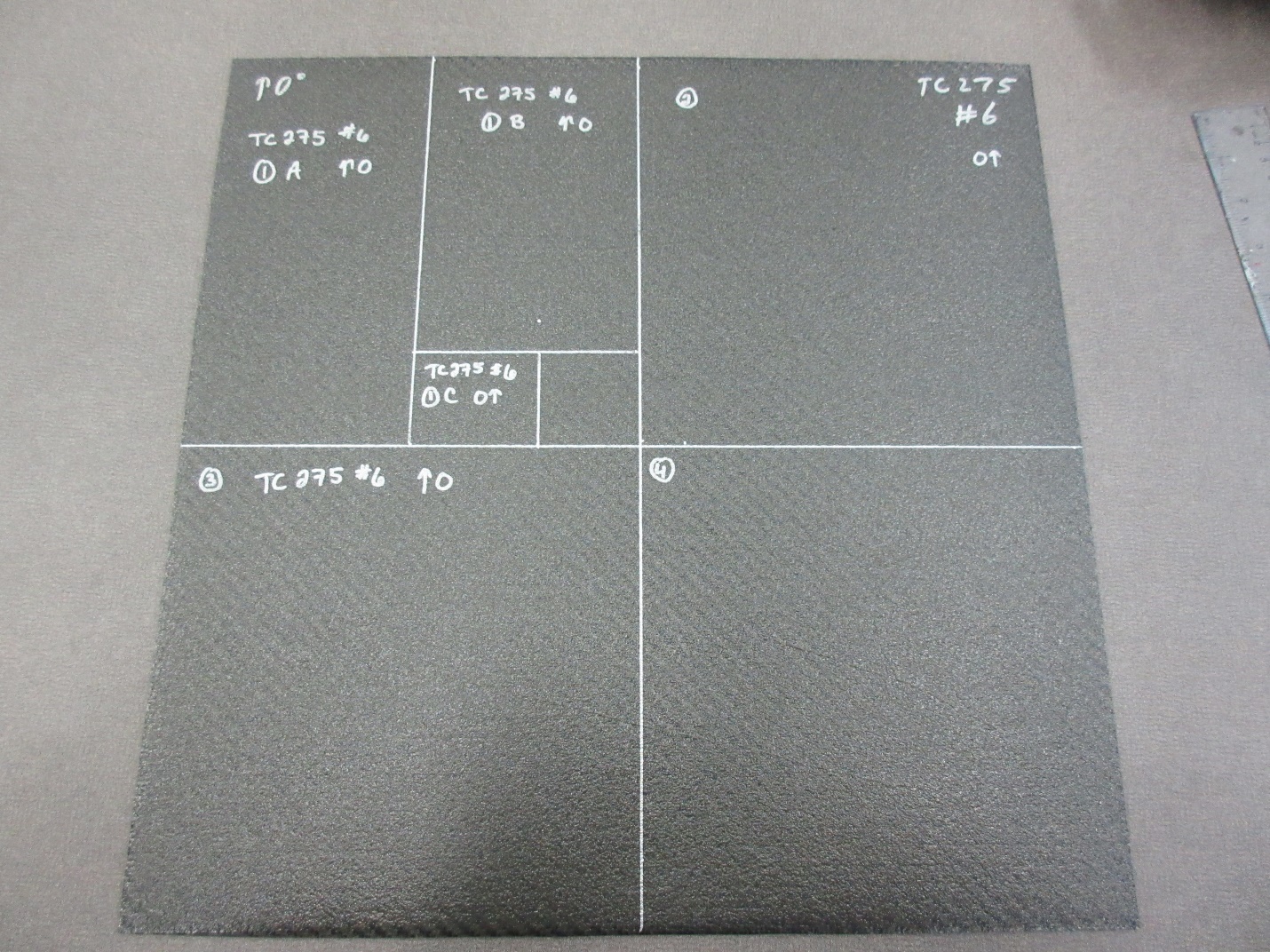 He tested two OOA carbon fibre reinforced epoxy materials. For each of the materials he built eight different panels. The variables that were changed for each panel were: